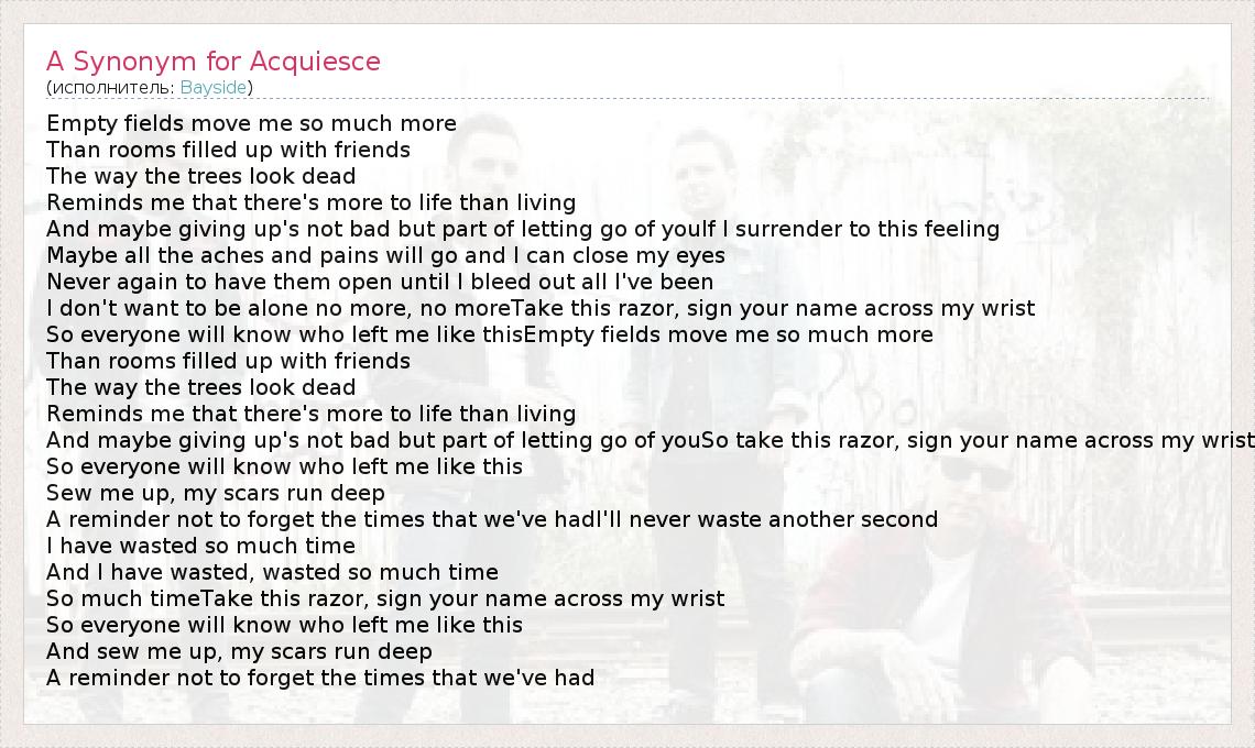 ГлавнаяИсполнителиBaysideA Synonym for Acquiesce