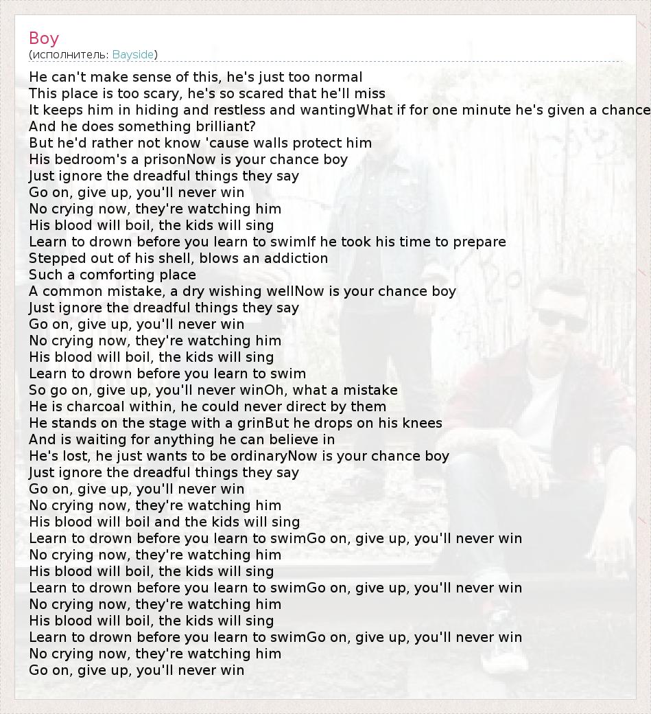 He's lost, he just wants to be ordinaryNow is your chance boy