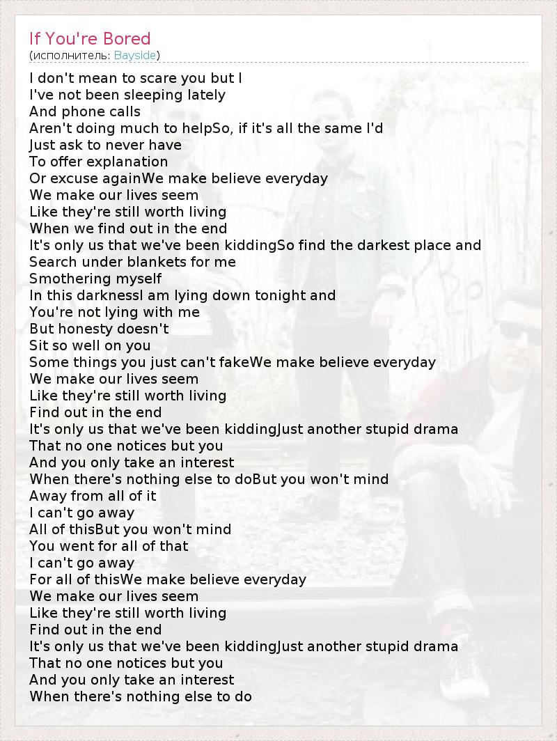 А как ты думаешь, о чем песня "If You're Bored" ?