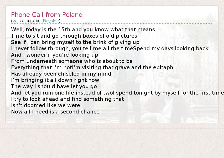 А как ты думаешь, о чем песня "Phone Call from Poland" ?