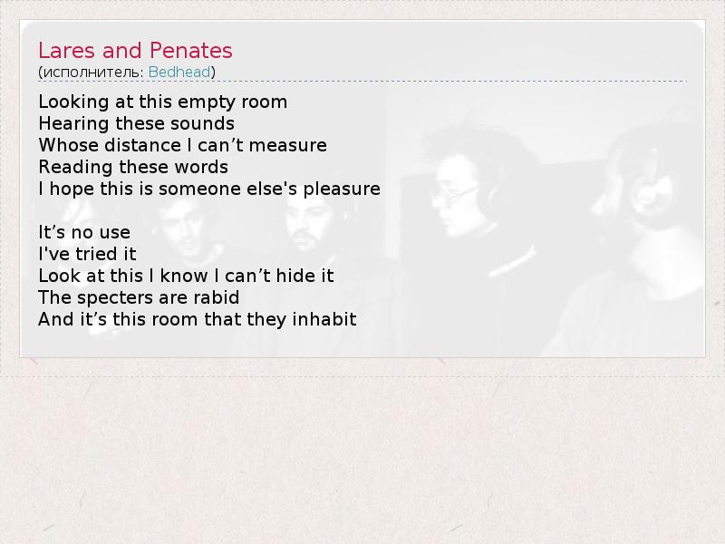 А как ты думаешь, о чем песня "Lares and Penates" ?