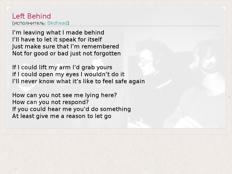 А как ты думаешь, о чем песня "Left Behind" ?