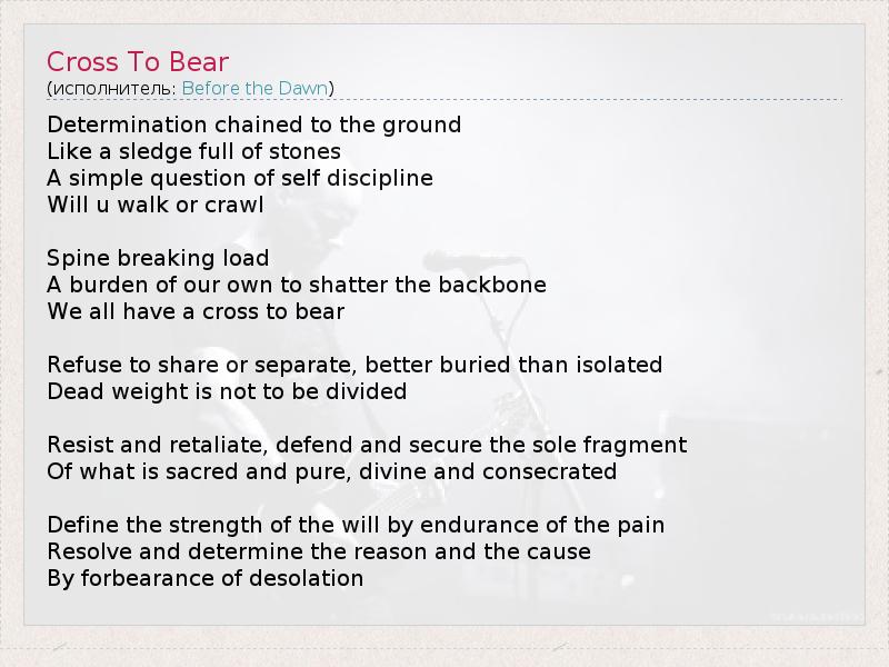 А как ты думаешь, о чем песня "Cross To Bear" ?