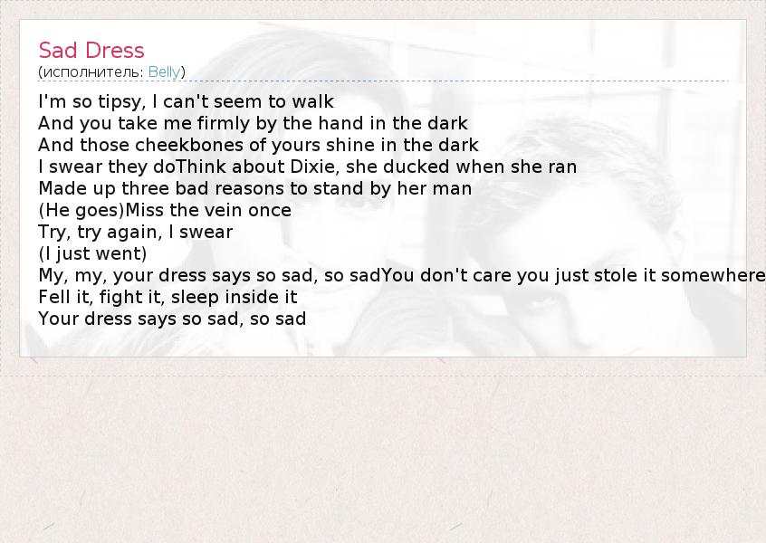 А как ты думаешь, о чем песня "Sad Dress" ?