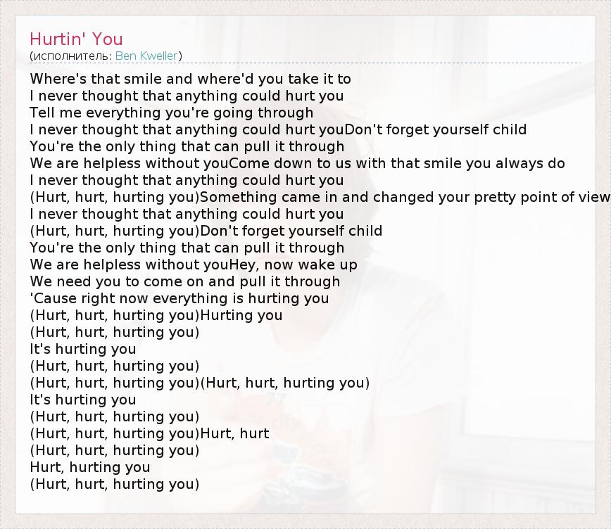Hurt, hurting you