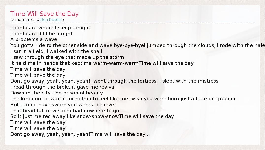 А как ты думаешь, о чем песня "Time Will Save the Day" ?