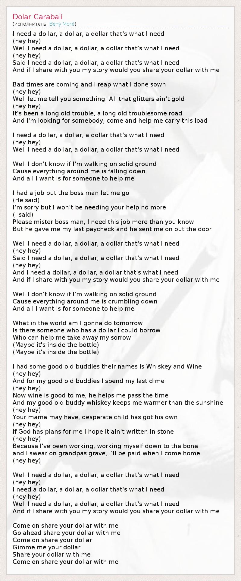 Well I need a dollar, a dollar, a dollar that's what I need