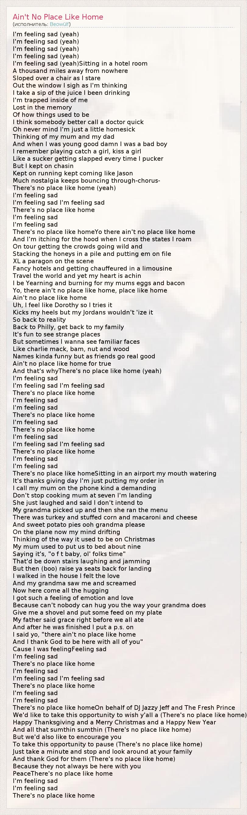 А как ты думаешь, о чем песня "Ain't No Place Like Home" ?