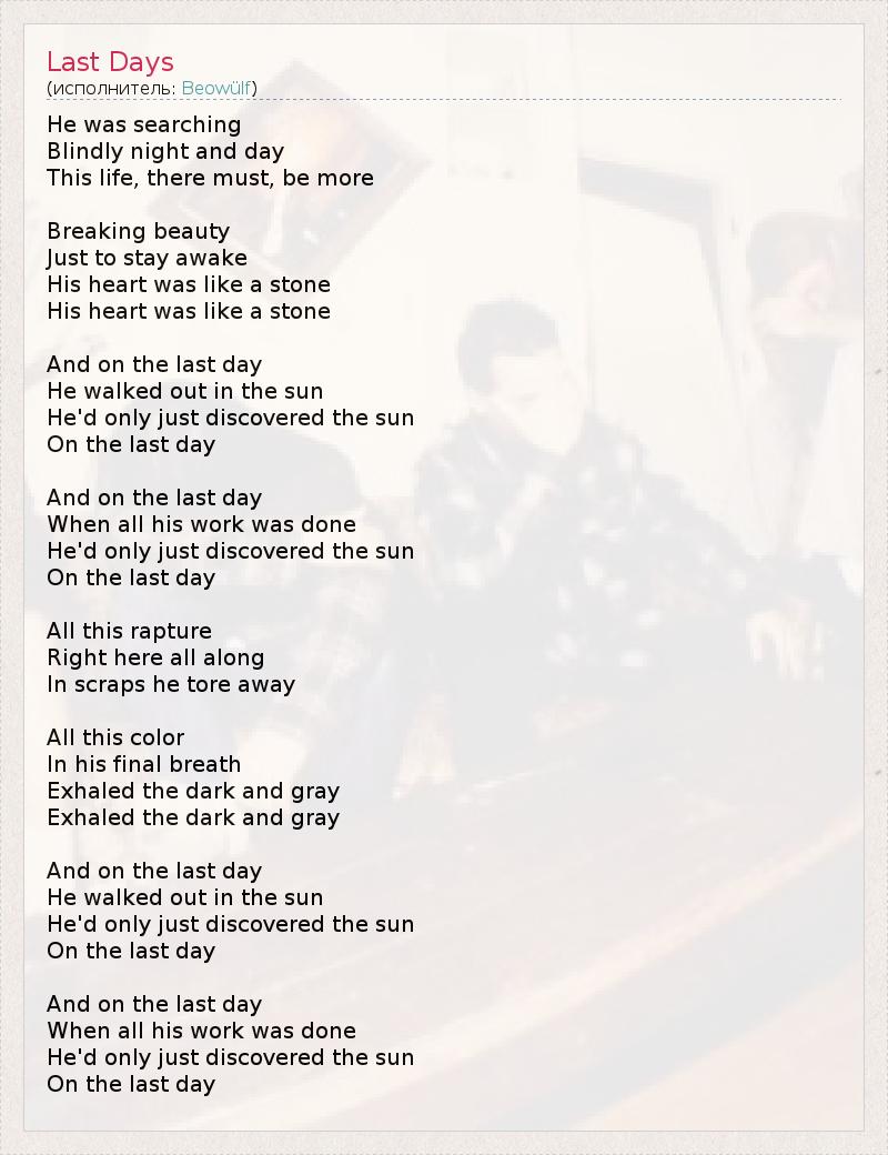 А как ты думаешь, о чем песня "Last Days" ?