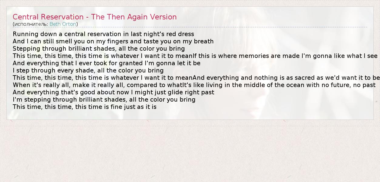 ГлавнаяИсполнителиBeth OrtonCentral Reservation - The Then Again Version