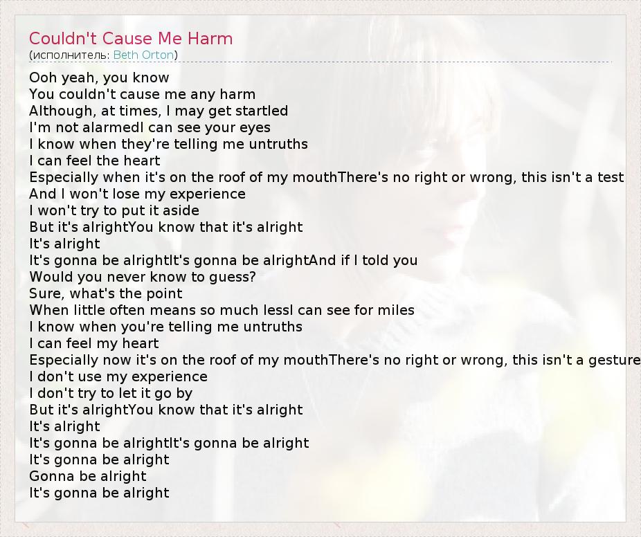 ГлавнаяИсполнителиBeth OrtonCouldn't Cause Me Harm