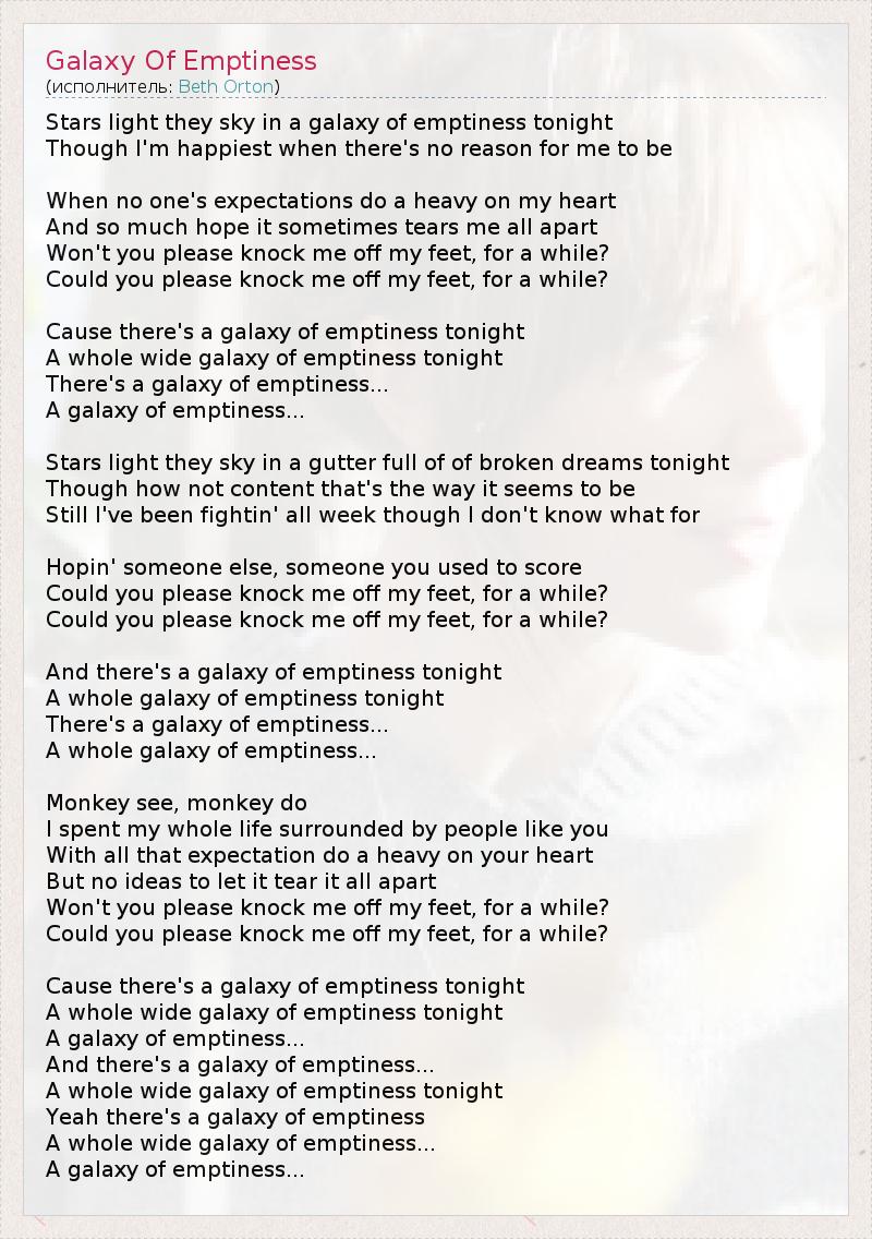 А как ты думаешь, о чем песня "Galaxy Of Emptiness" ?