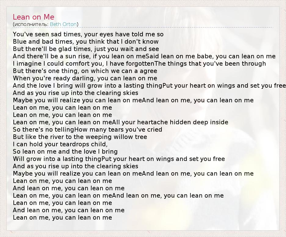 А как ты думаешь, о чем песня "Lean on Me" ?