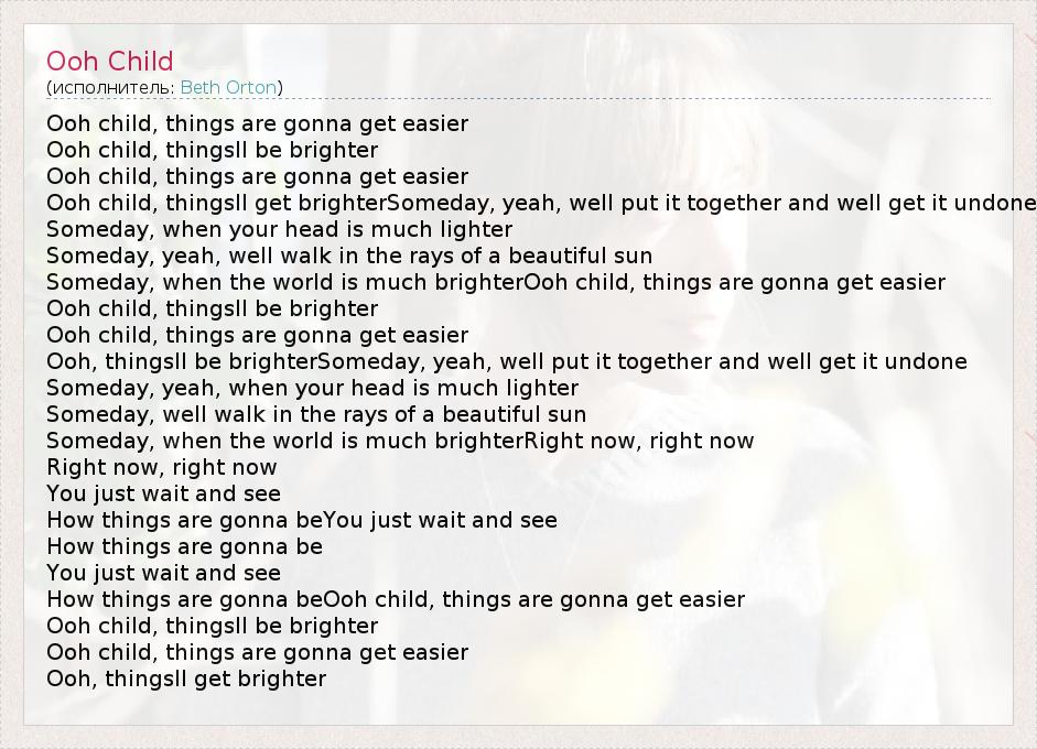 А как ты думаешь, о чем песня "Ooh Child" ?