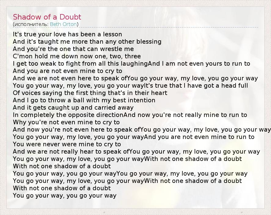 А как ты думаешь, о чем песня "Shadow of a Doubt" ?