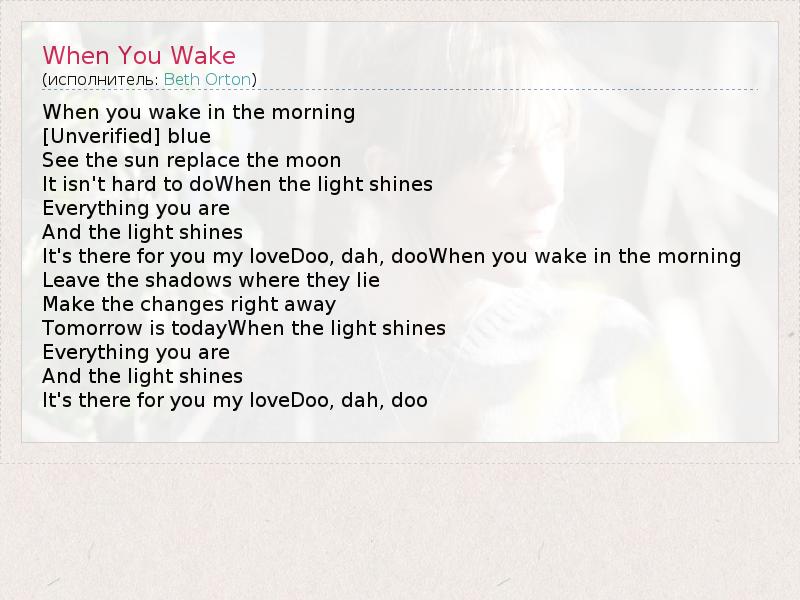 It's there for you my loveDoo, dah, dooWhen you wake in the morning