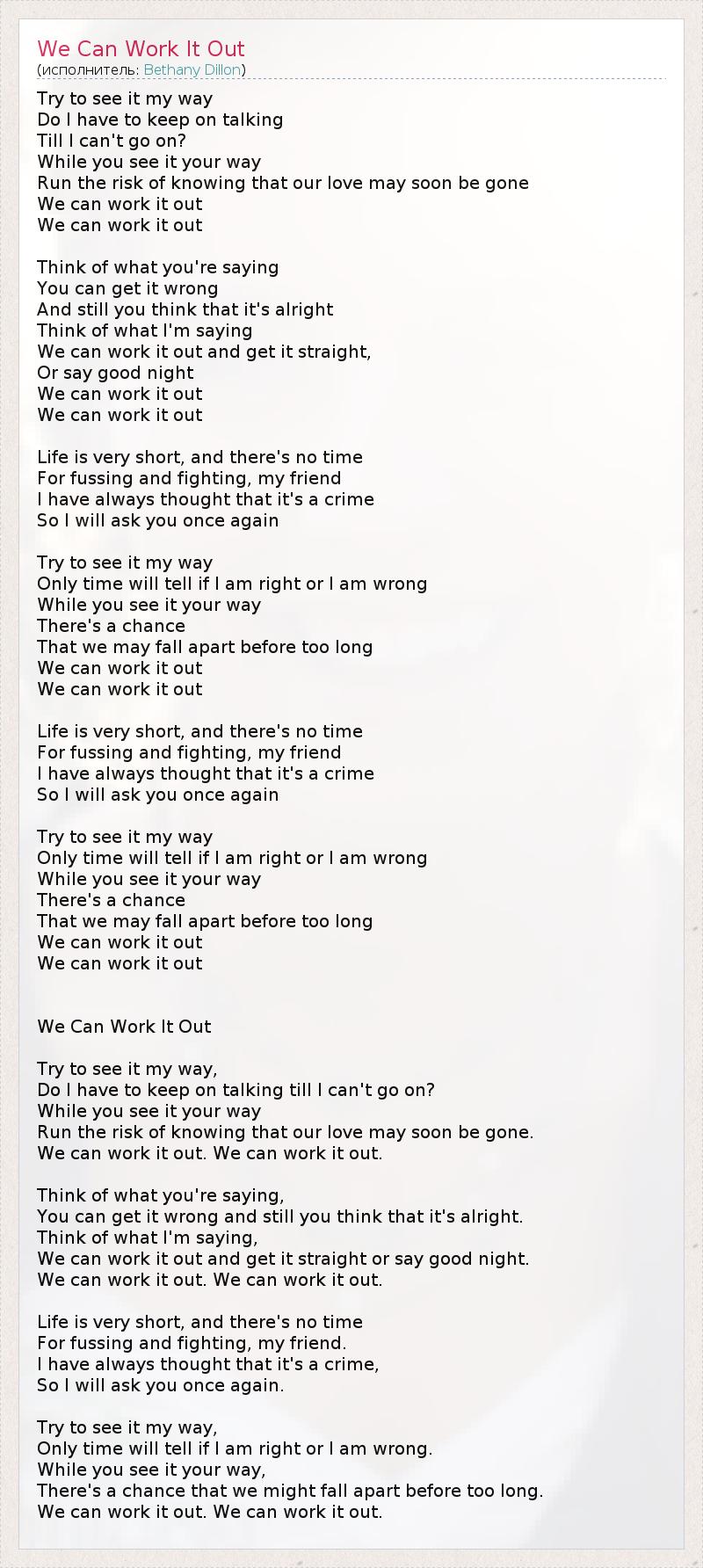 А как ты думаешь, о чем песня "We Can Work It Out" ?