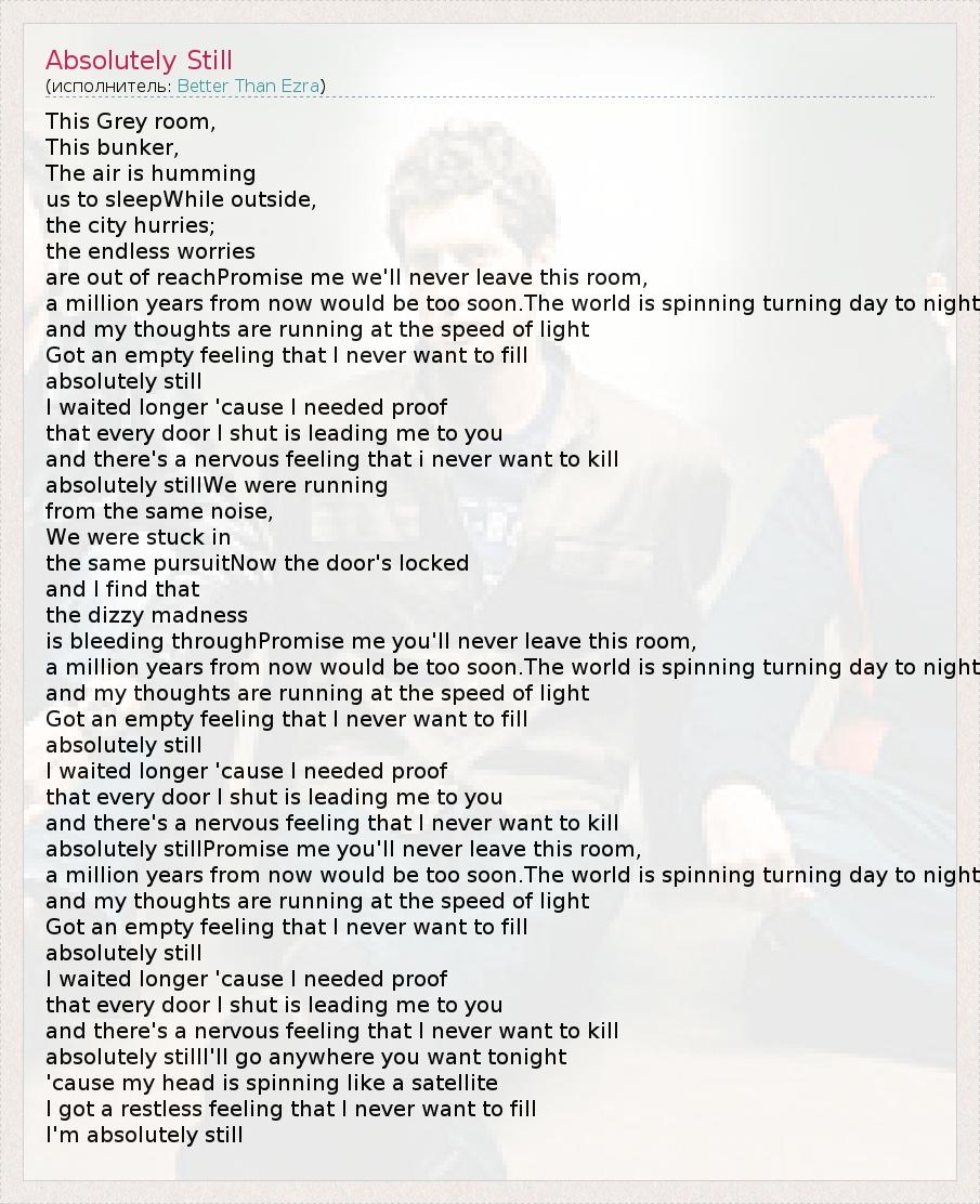 А как ты думаешь, о чем песня "Absolutely Still" ?