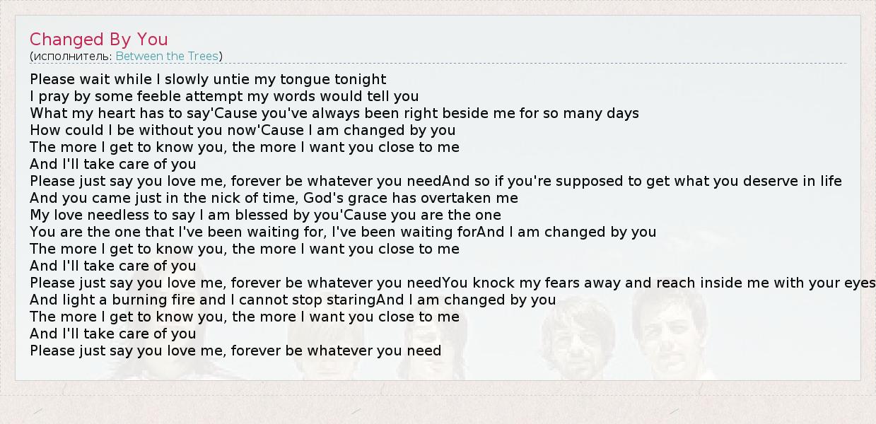 А как ты думаешь, о чем песня "Changed By You" ?