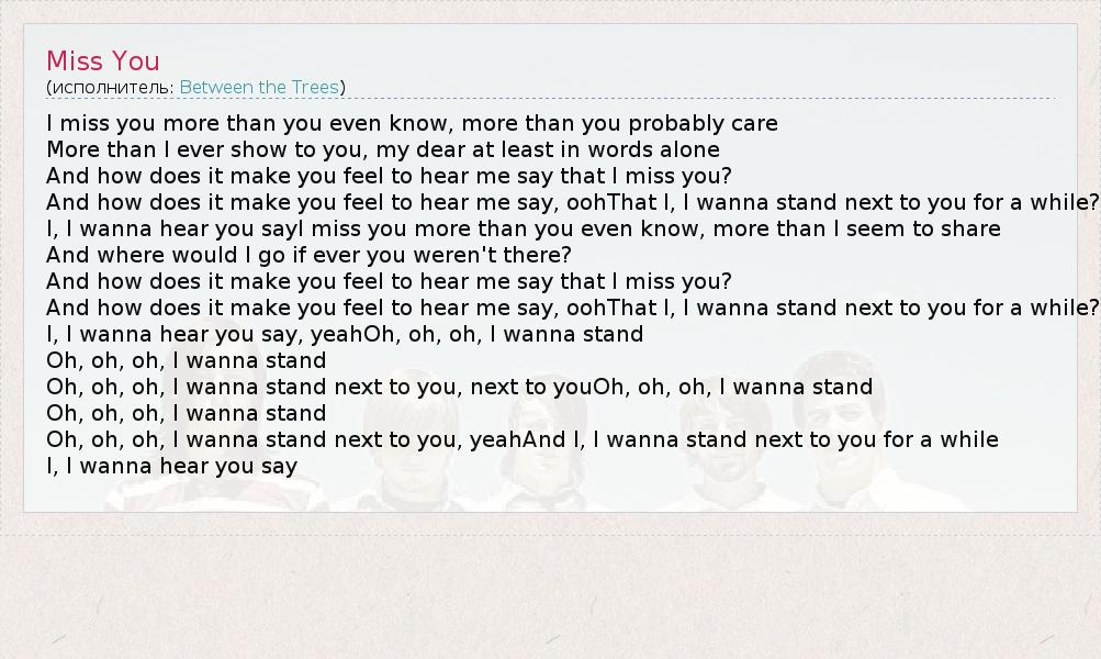 I, I wanna hear you sayI miss you more than you even know, more than I seem to share