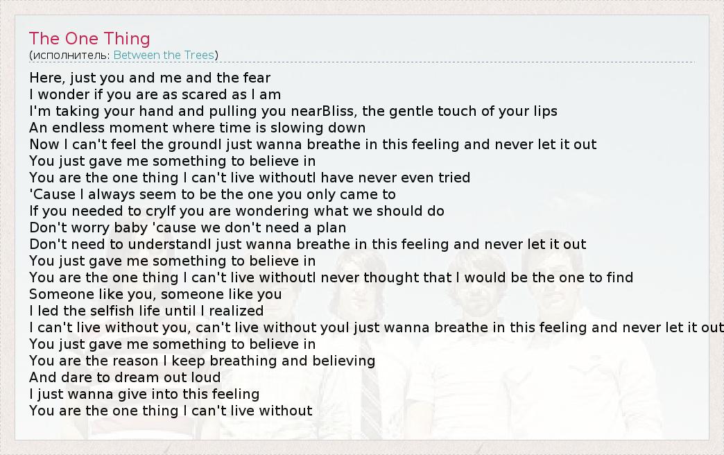 You are the one thing I can't live withoutI never thought that I would be the one to find