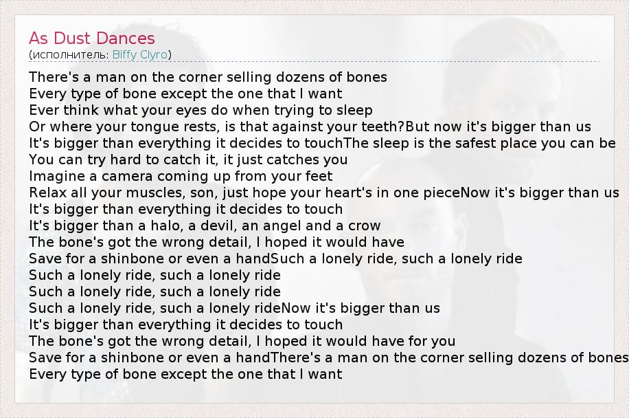 А как ты думаешь, о чем песня "As Dust Dances" ?