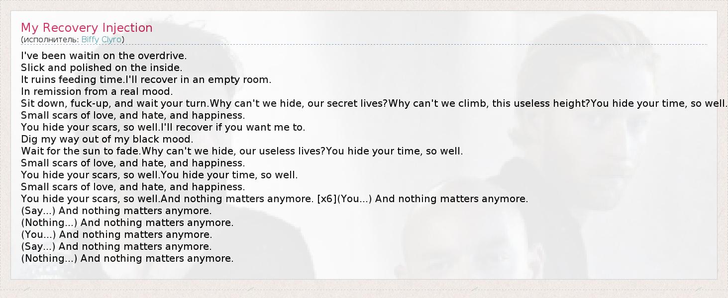 А как ты думаешь, о чем песня "My Recovery Injection" ?