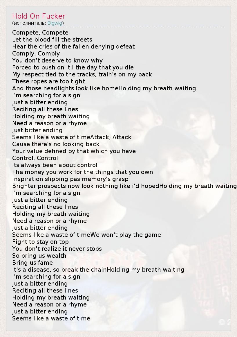 А как ты думаешь, о чем песня "Hold On Fucker" ?