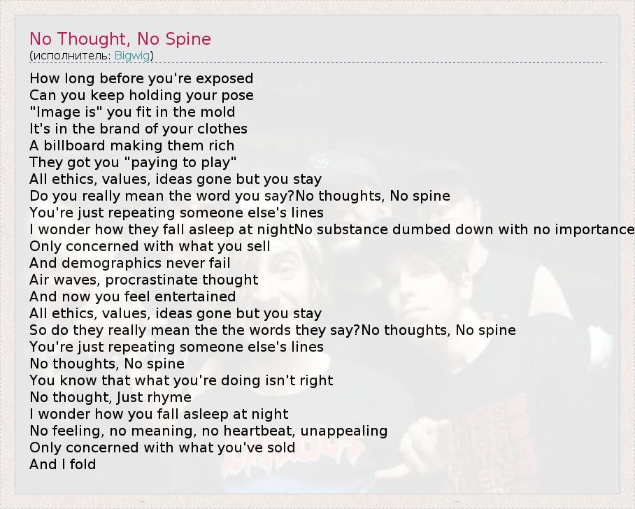 А как ты думаешь, о чем песня "No Thought, No Spine" ?