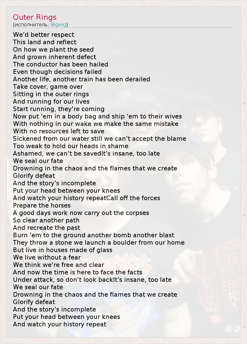 А как ты думаешь, о чем песня "Outer Rings" ?