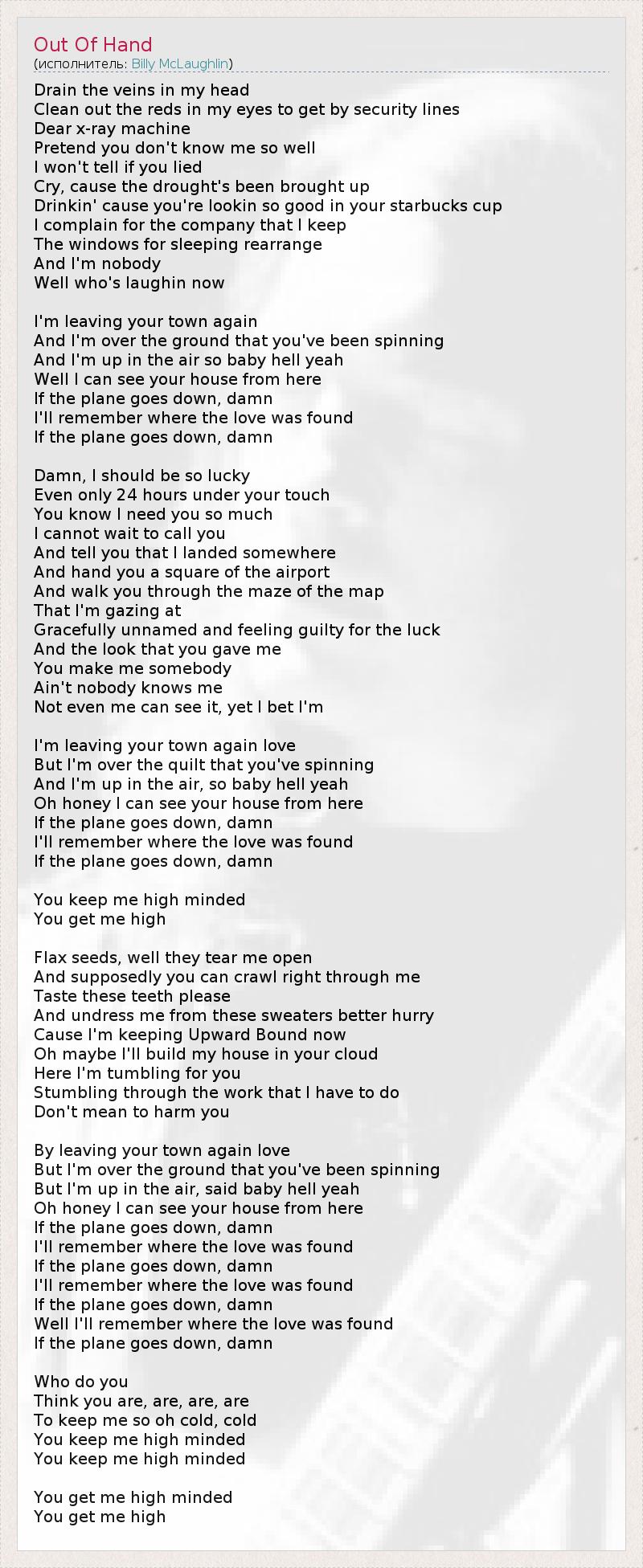 А как ты думаешь, о чем песня "Out Of Hand" ?