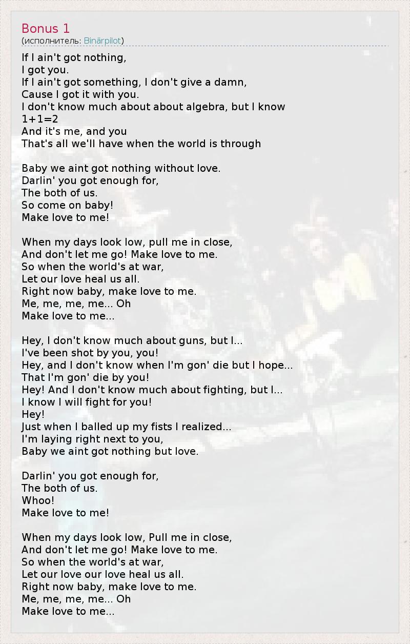 А как ты думаешь, о чем песня "Bonus 1" ?