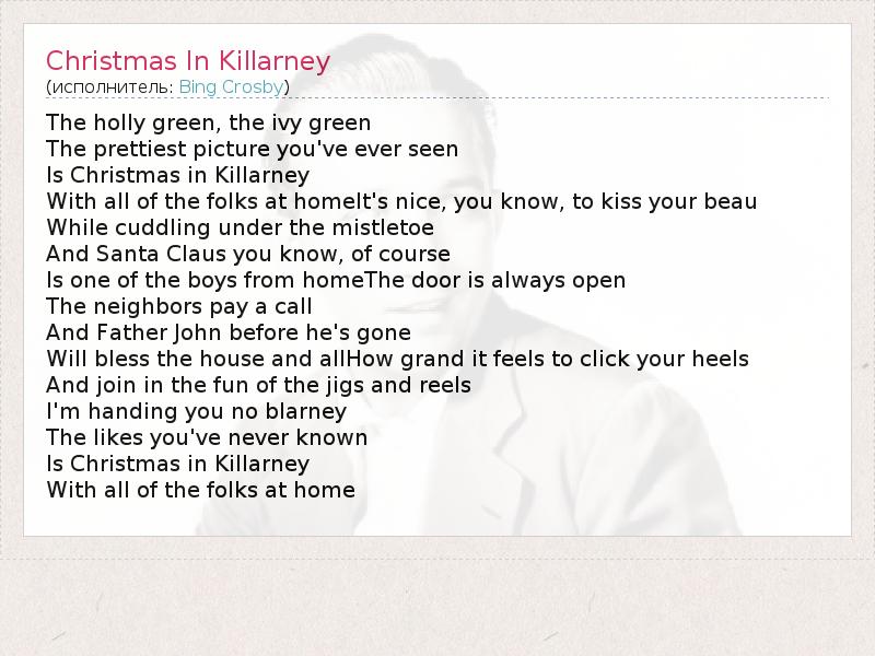 А как ты думаешь, о чем песня "Christmas In Killarney" ?