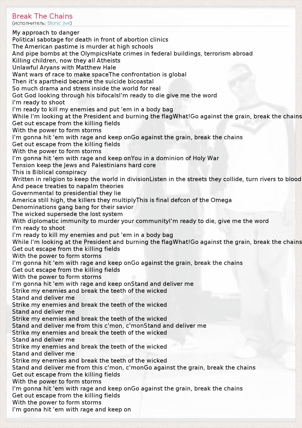 А как ты думаешь, о чем песня "Break The Chains" ?