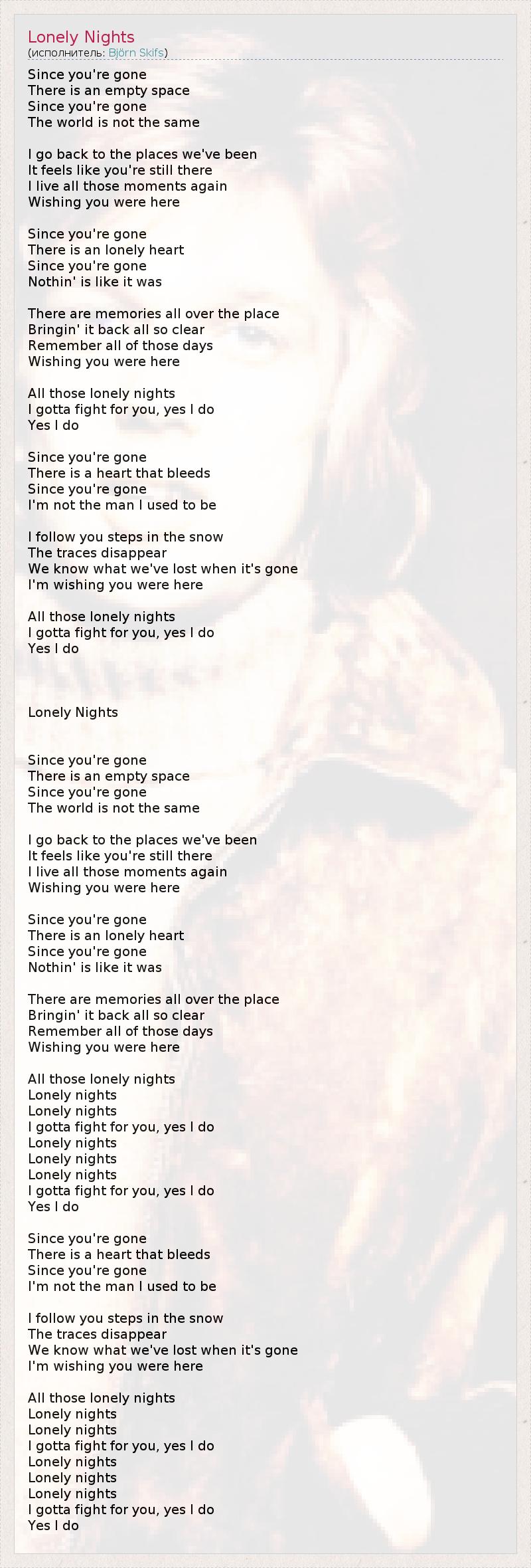 А как ты думаешь, о чем песня "Lonely Nights" ?