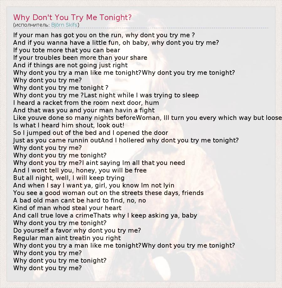 А как ты думаешь, о чем песня "Why Don't You Try Me Tonight?" ?