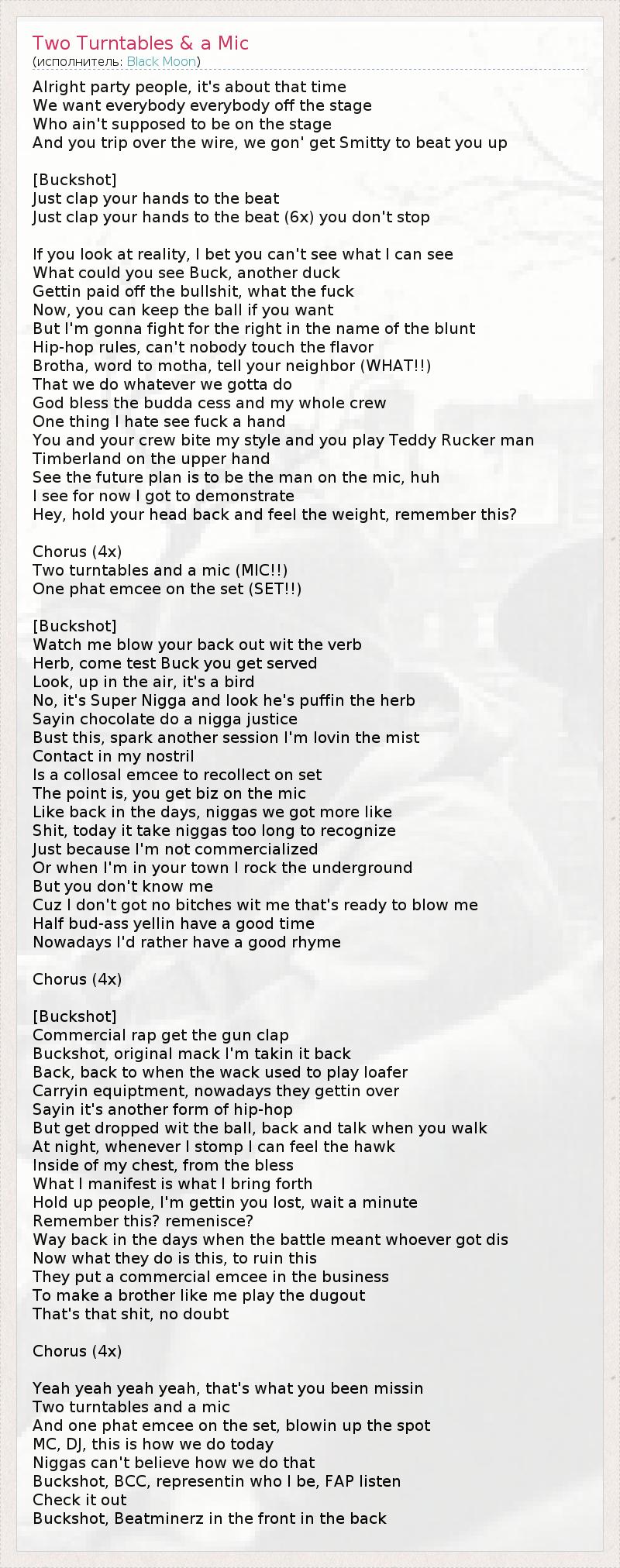 ГлавнаяИсполнителиBlack MoonTwo Turntables & a Mic