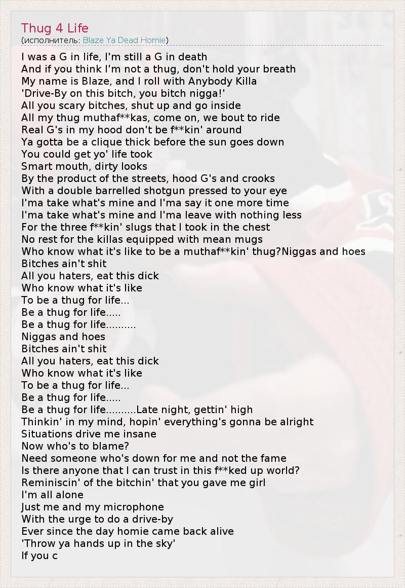 А как ты думаешь, о чем песня "Thug 4 Life" ?