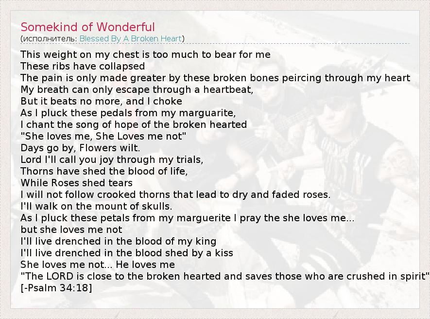 А как ты думаешь, о чем песня "Somekind of Wonderful" ?