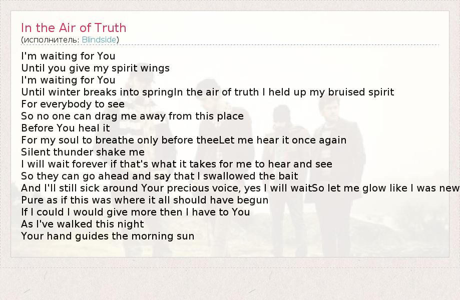 А как ты думаешь, о чем песня "In the Air of Truth" ?
