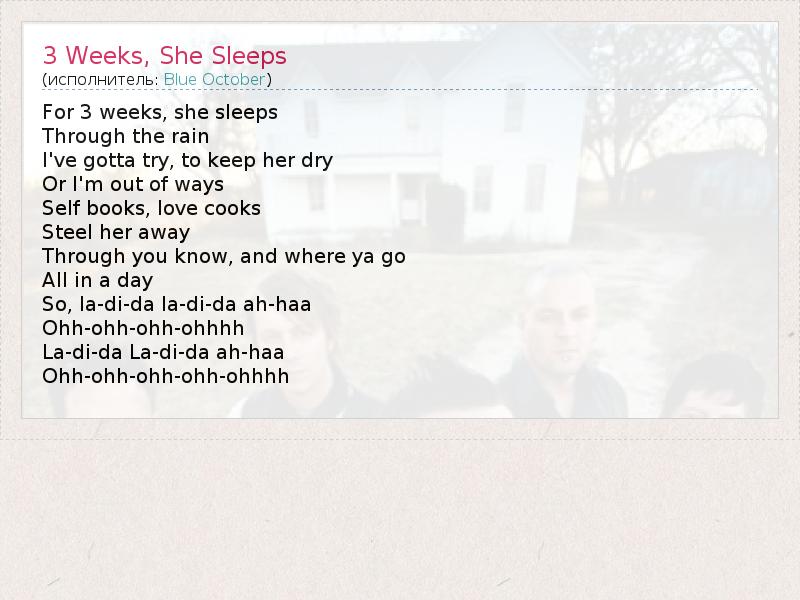А как ты думаешь, о чем песня "3 Weeks, She Sleeps" ?