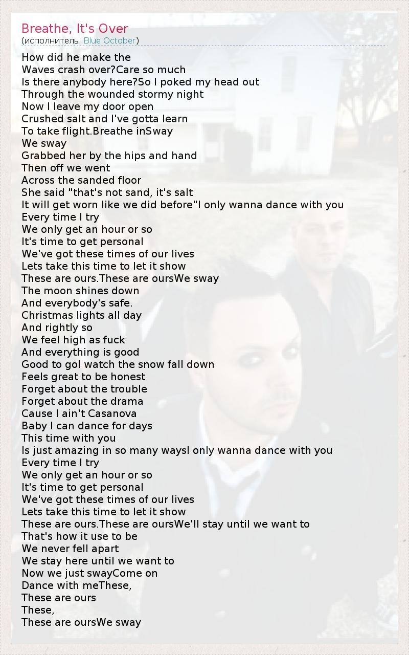 А как ты думаешь, о чем песня "Breathe, It's Over" ?
