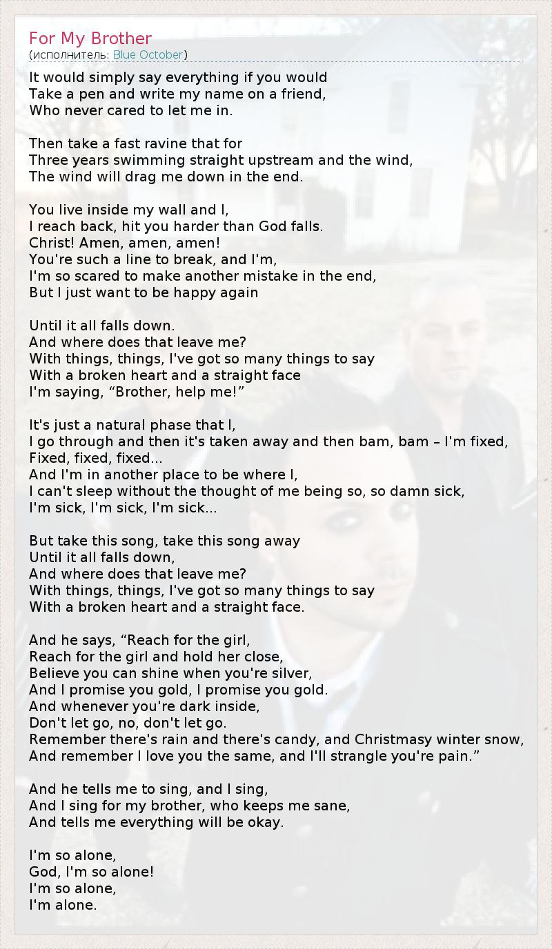 Я пою для своего брата, который хранит мой рассудок