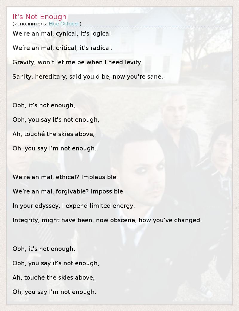 А как ты думаешь, о чем песня "It's Not Enough" ?