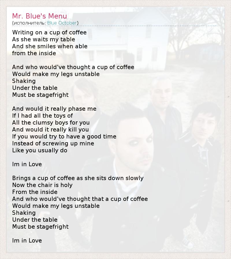 А как ты думаешь, о чем песня "Mr. Blue's Menu" ?