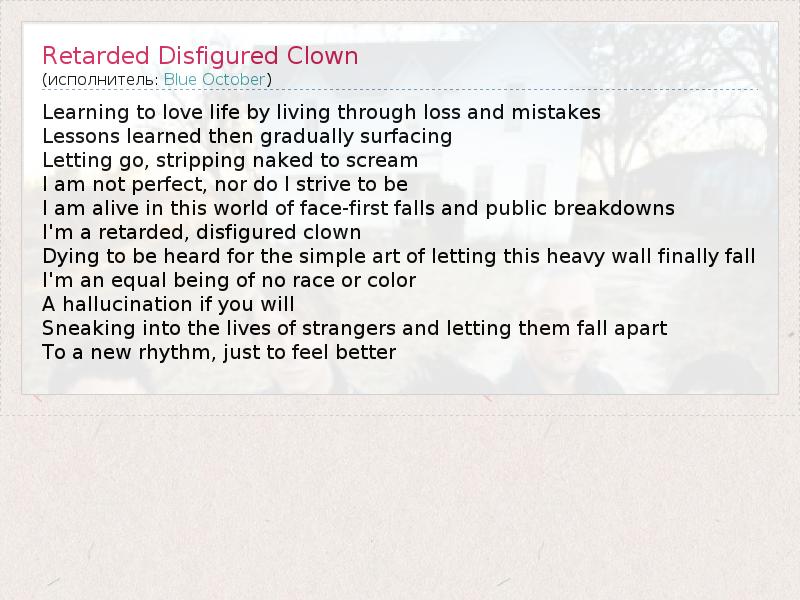 ГлавнаяИсполнителиBlue OctoberRetarded Disfigured Clown