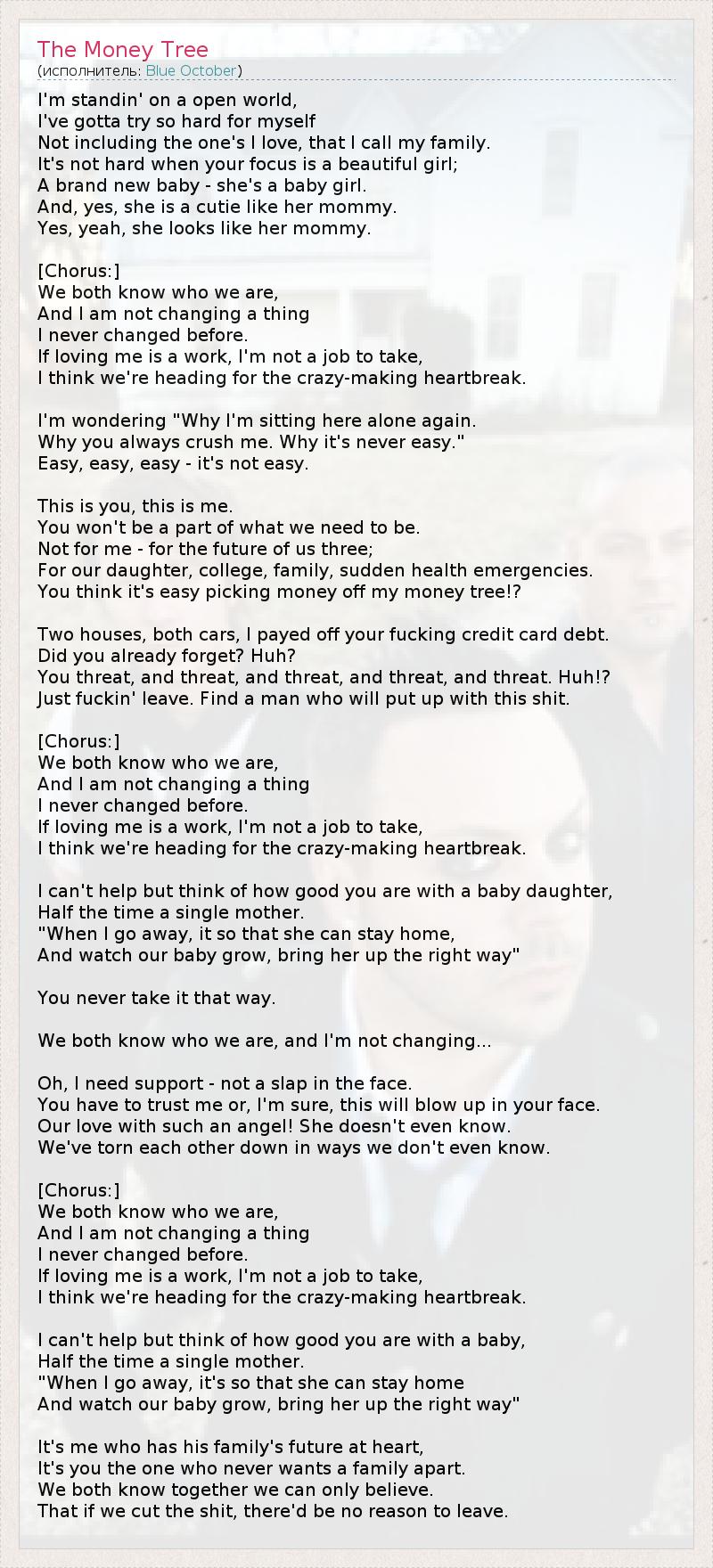 А как ты думаешь, о чем песня "The Money Tree" ?
