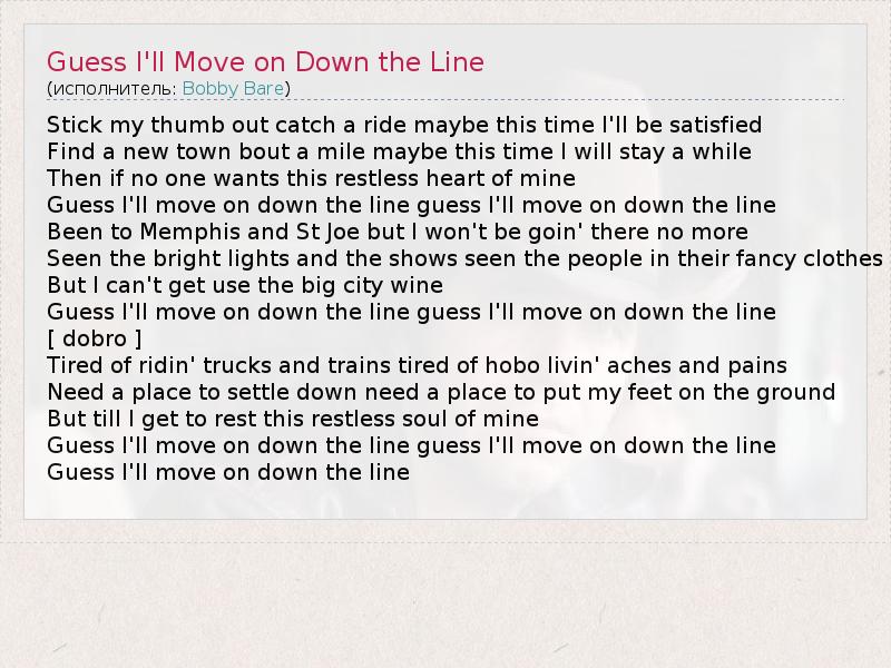А как ты думаешь, о чем песня "Guess I'll Move on Down the Line" ?