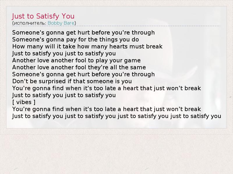 А как ты думаешь, о чем песня "Just to Satisfy You" ?
