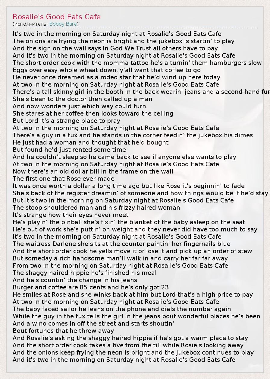 А как ты думаешь, о чем песня "Rosalie's Good Eats Cafe" ?